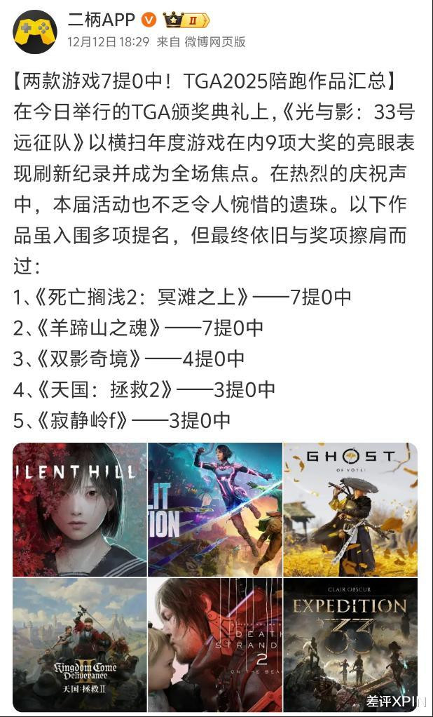 33号远征队屠榜后, TGA成了另一种面貌的野鸡奖了?