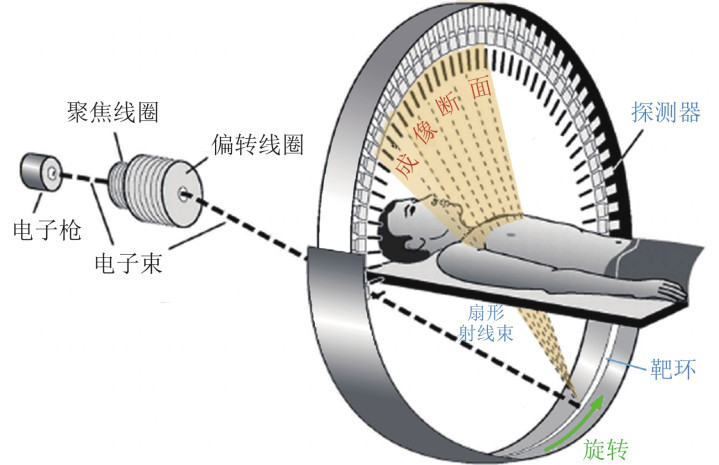跟着本领进步,CT建设阅历了屡次鼎新。第二代CT缩小了探伤器孔径,增多了探伤器数目。第三代CT接纳扇形X射线束和多半精真金不怕火陈设的探伤器,扫描时只需旋转无需平移,将扫描时刻裁汰至2-9秒。